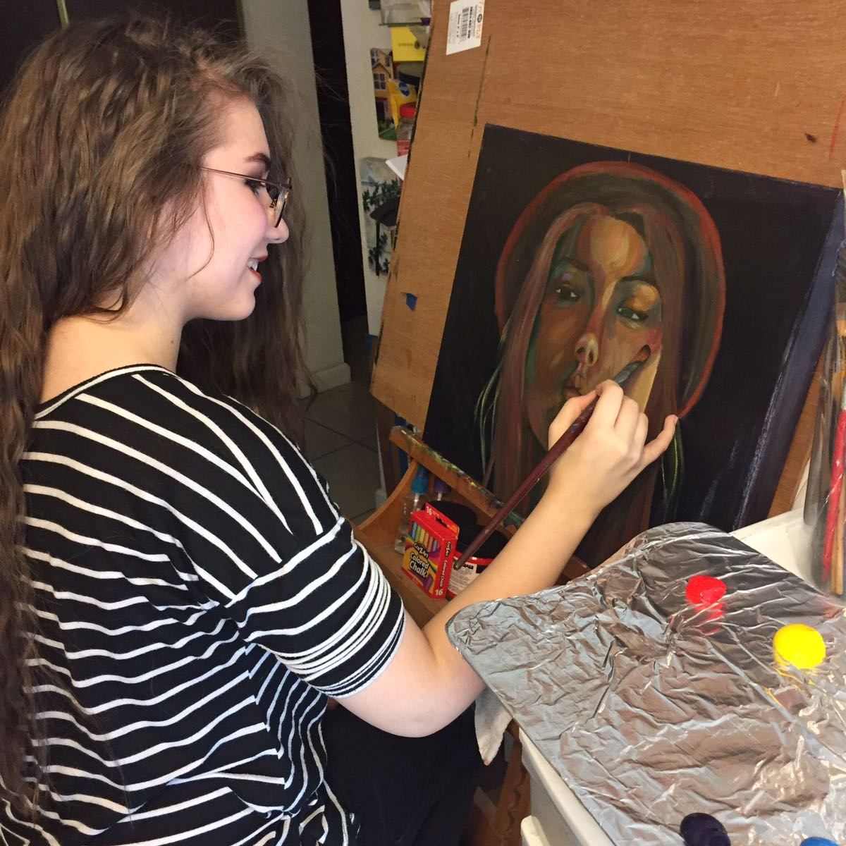 In my small groups we build close relationships that are supportive and fun. The space is small and intimate. the students will see my professional work as it progresses and we will talk about my process. I coach older kids with their applications to California State Summer School of the arts that is a very competitive program that can be a life changing experience for a young artist. We have had several of my kids get in and I am very proud of them. As a Certified GOLDEN artist Educator I have a complete line of products to expose your child a multitude of true fine arts projects. In this area I do believe in exposing kids to adult quality tools.